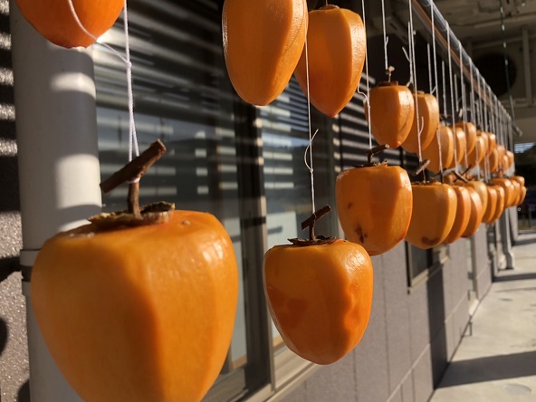 いただいた渋柿は干し柿にして、みんなで食べましょう。