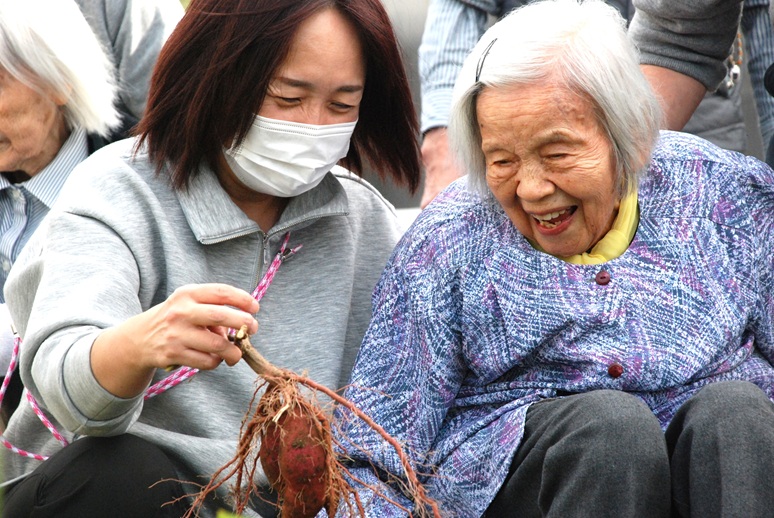 今日は、デイサービスと長月・神無月のユニットで芋を掘りました。